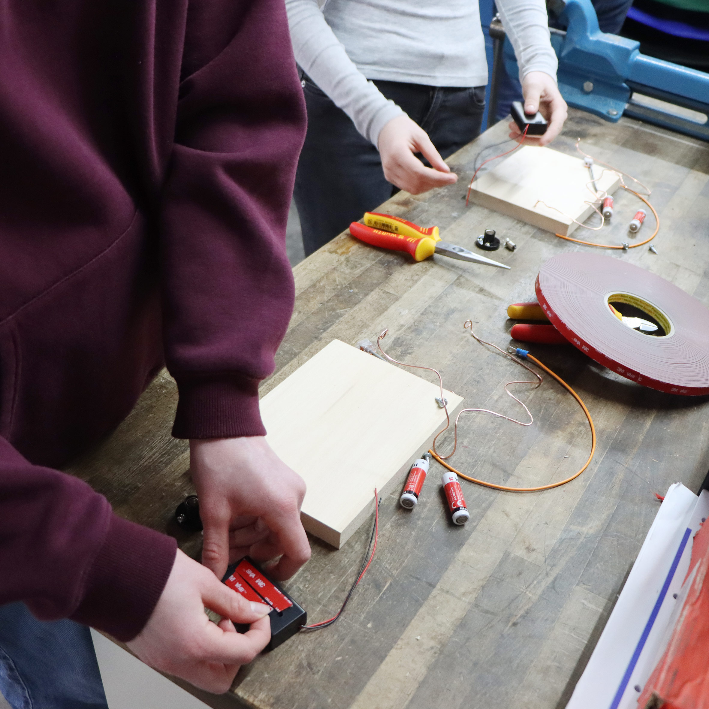 Gestern waren zehn Schülerinnen und Schüler bei uns zu Gast und haben unser Unternehmen hautnah kennengelernt. In unserer Lehrwerkstatt wurde es direkt praktisch: Gemeinsam bauten sie das Spiel „Der heiße Draht“. Dabei gilt es, eine Schlaufe sicher durch einen Parcours zu führen – ohne den Metalldraht zu berühren. Eine spannende Aufgabe, die Geschick, Konzentration und technisches Verständnis erfordert.