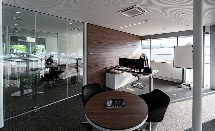 Im Fokus stand der Showroom. Dieser Bereich sollte nicht nur funktional überzeugen, sondern auch den hohen ästhetischen Ansprüchen von Porsche gerecht werden. Für uns bedeutete das, eine Lüftungsinstallation auf höchstem Niveau zu schaffen, sowohl technisch als auch optisch.